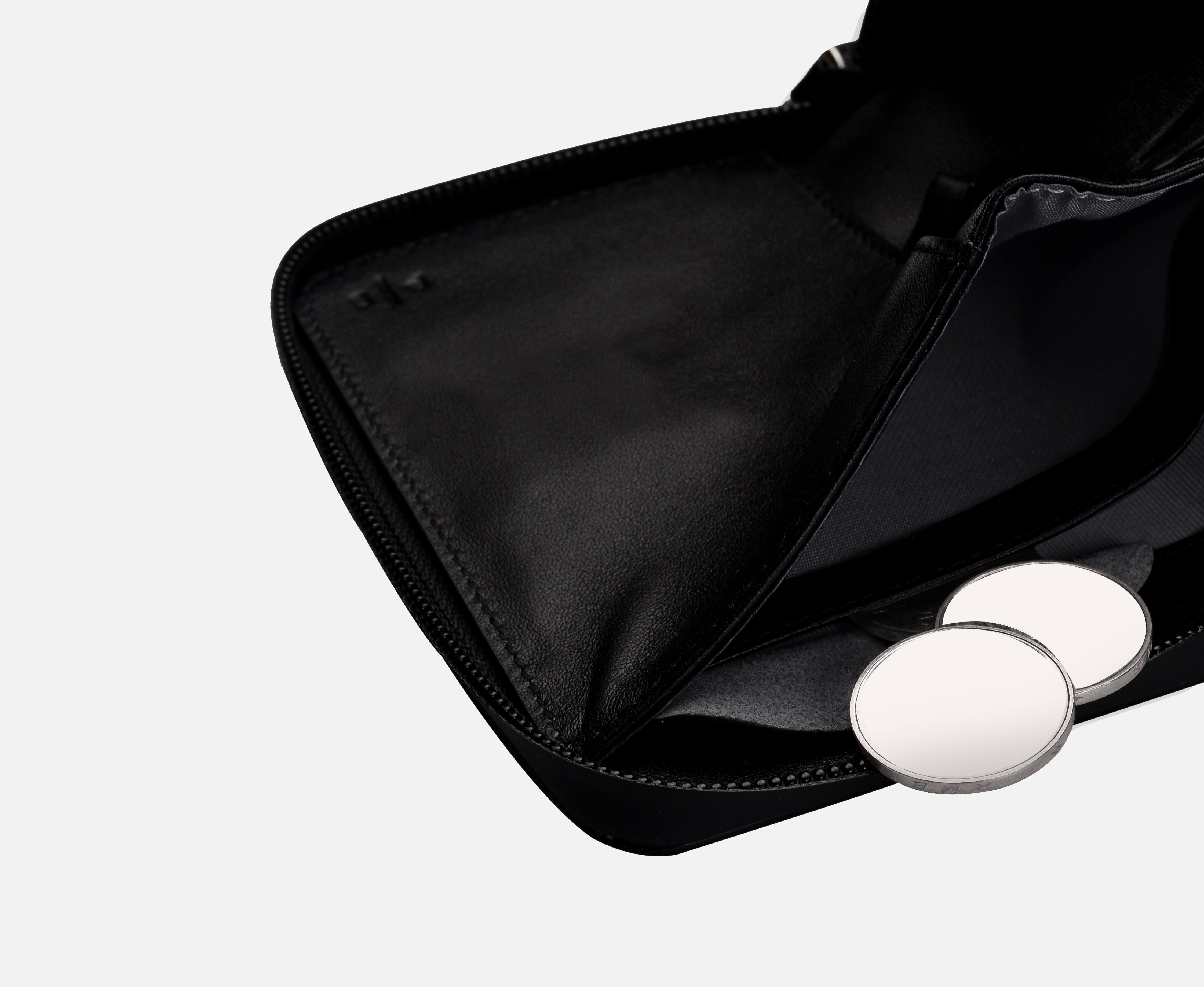 • 2 Central Compartments — Cards / Folded Bills