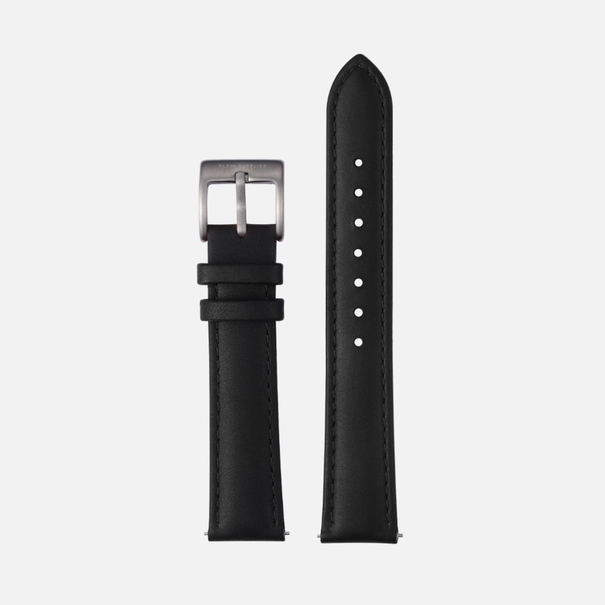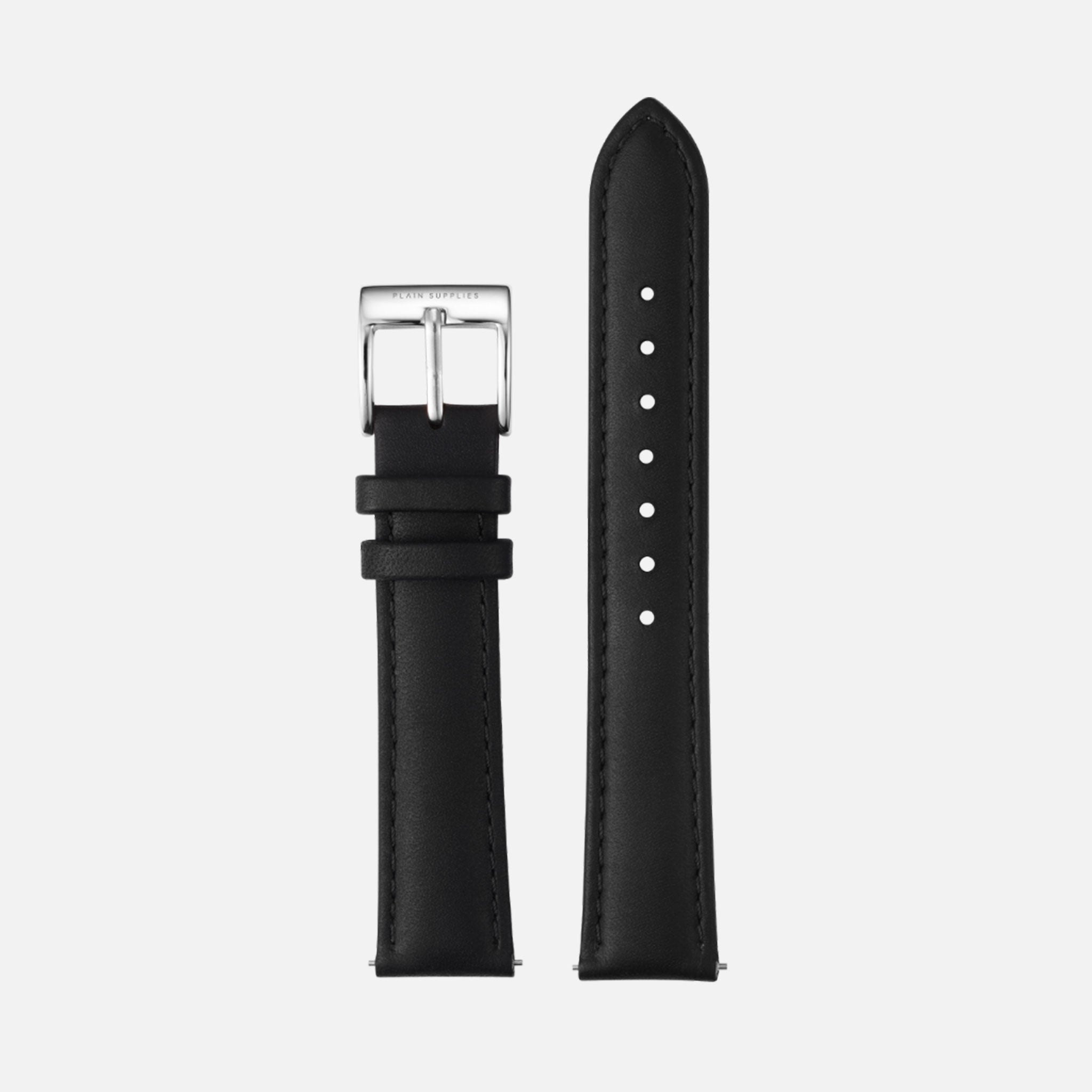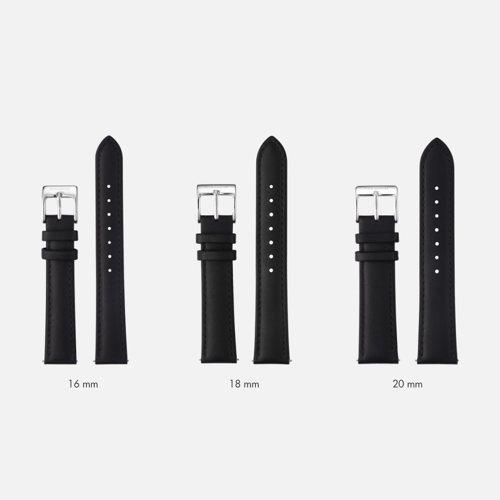 16/18/20mm Stitched Leather Strap - Black